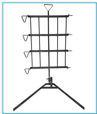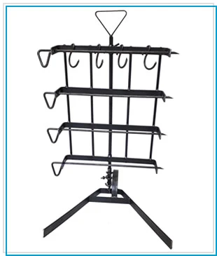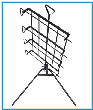 4 BRAZOS CON 3 PUNTOS DE REGULACIÓN PARA INSERTAR LA PIEZA A ASAR CON ESPADA, ESTO TE DA LA TRANQUILIDAD DE NO CORRER RIESGOS DE APERTURA DE PRESILLAS NI ATADURAS CON ALAMBRE, PERMITE ASAR UNA PIEZA DE POCO ESPESOR Y UNA DE GRAN PORTE.