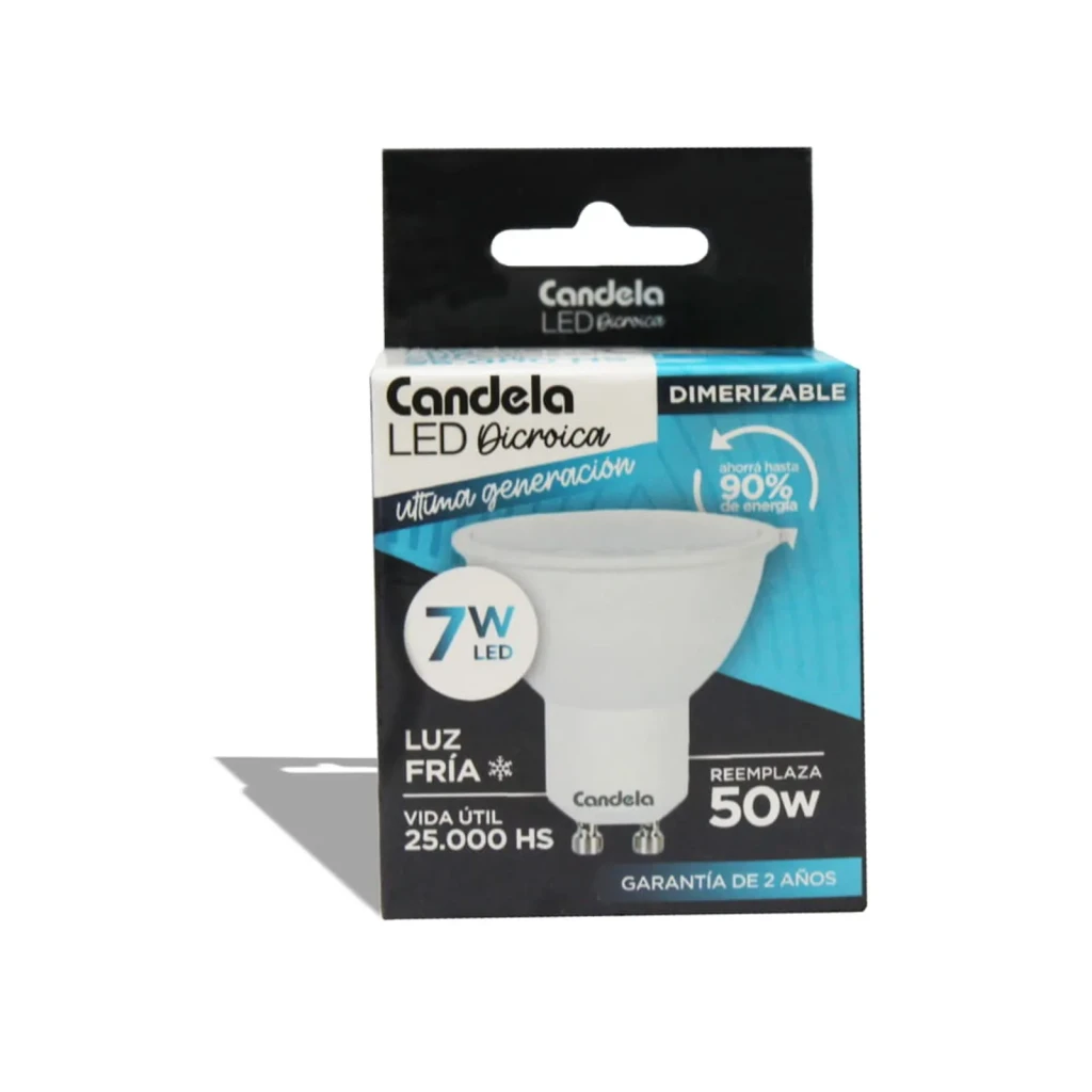 Características Destacadas Led Dicroica Dimer 7W Fría Gu10 Candela