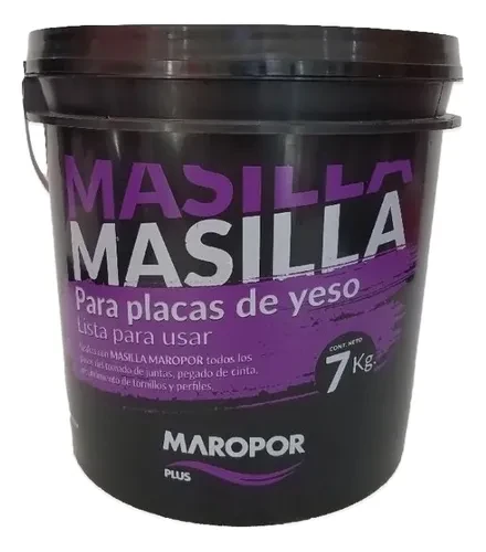 La masilla lista para usar MAROPOR es un producto especialmente formulado para su aplicación en las terminaciones de placas para la construcción en seco. Se trata de un material que se diseñó para cumplir una función específica, es la de darle al sistema de construcción en seco, la uniformidad necesaria para otorgar una sensación de solidez en su superficie y que permanezca en el tiempo. La Masilla MAROPOR se usa en el punto de unión entre las placas y es la base fundamental para que un tabique de construcción en seco reemplace a una pared de ladrillo y un cielorraso de placas reemplace a un cielorraso suspendido de yeso. Es el logro de uniformidad el que asegura la aceptación de los cambios de concepto de construcción. Para lograr los atributos referidos, la masilla debe ser un material que se adhiera sólidamente a la base y se debe comportar como un puente de unión seguro y firme. Dejando aclarado que toda la estructura metálica de sostén debe cumplir con las especificaciones técnicas de sus fabricantes.
