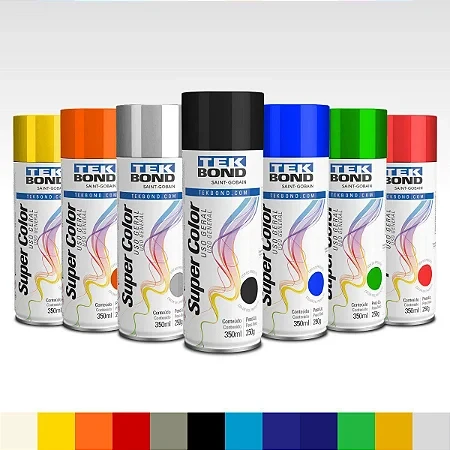 Super Color Uso General es una pintura en aerosol desarrollada con resinas acrílicas de secado rápido y óptima resistencia a la intemperie. Puede ser aplicada tanto en ambientes externos como internos. Proporciona excelente acabado, alto poder de cobertura y mayor durabilidad. Indicada para metal (hierro y acero), madera, cerámica y yeso.