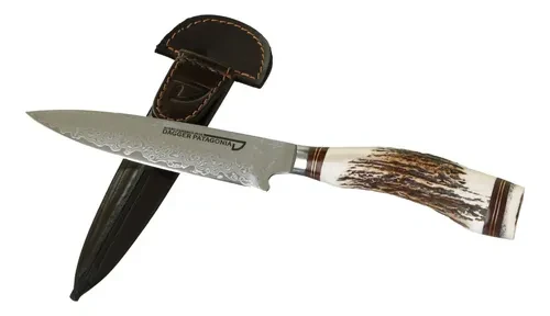Nuestras hojas Dagger Patagonia de Acero Damasco son una cruza de la mejor producción nacional y el más firme acero japonés. Cuenta con un núcleo de VG10 y 33 capas de acero inoxidable SS316 a cada lado, volviéndolo un favorito de los fanáticos del acero.